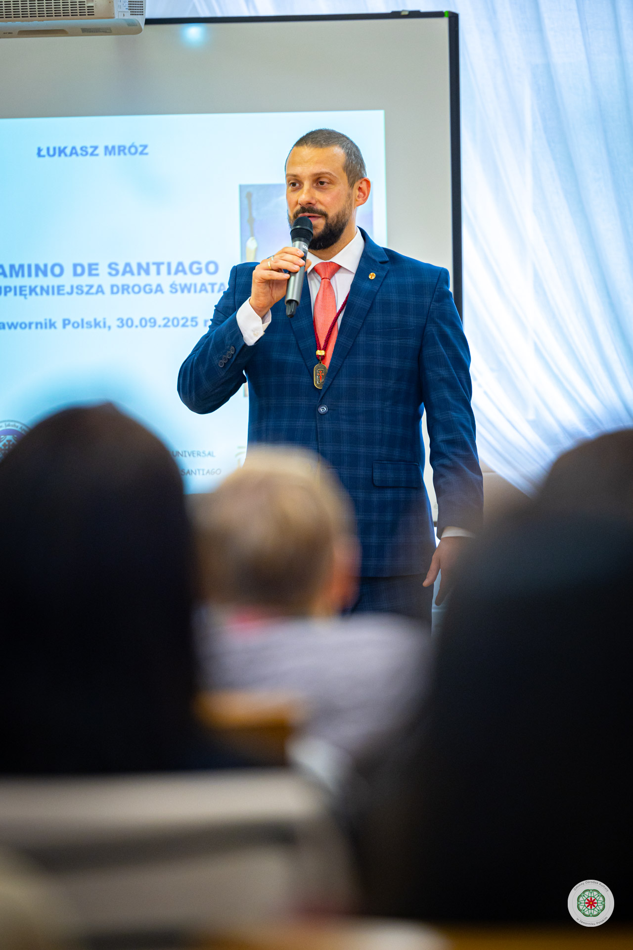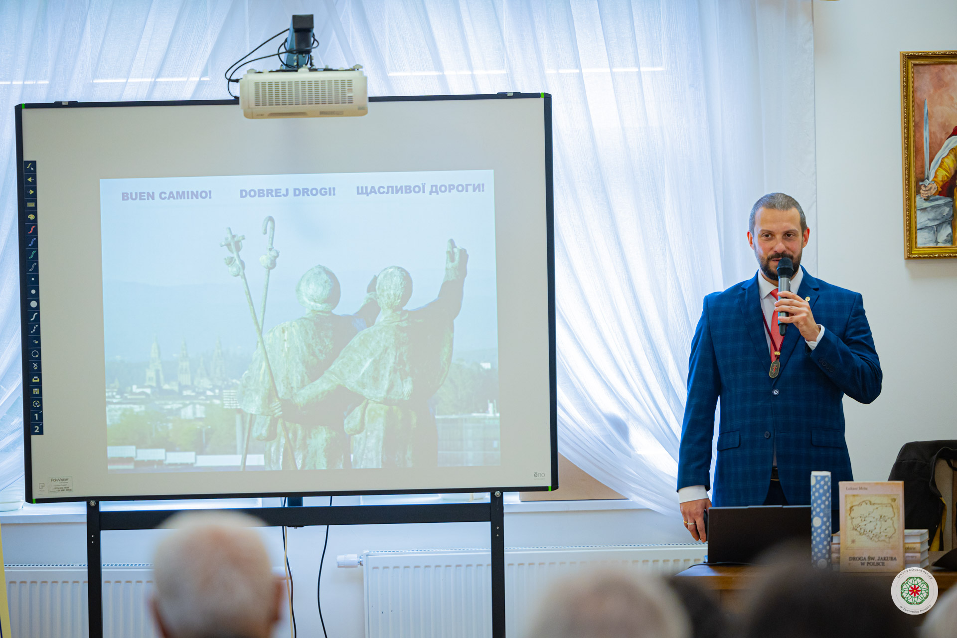 Spotkanie poprowadził dr Łukasz Mróz – geograf religii, Dyrektor Muzeum w Przeworsku, autor licznych publikacji oraz pasjonat Europejskich Szlaków Kulturowych, w tym Drogi św. Jakuba.