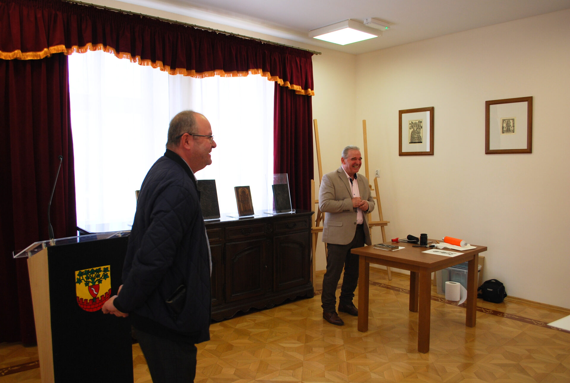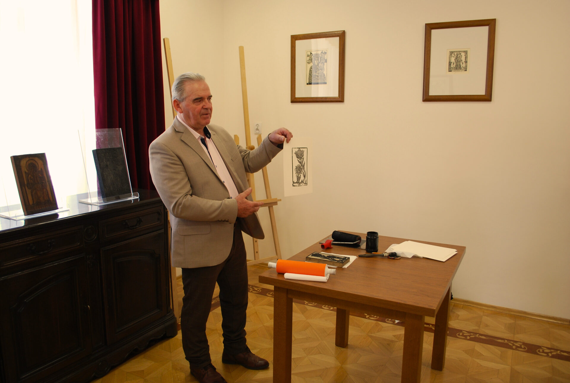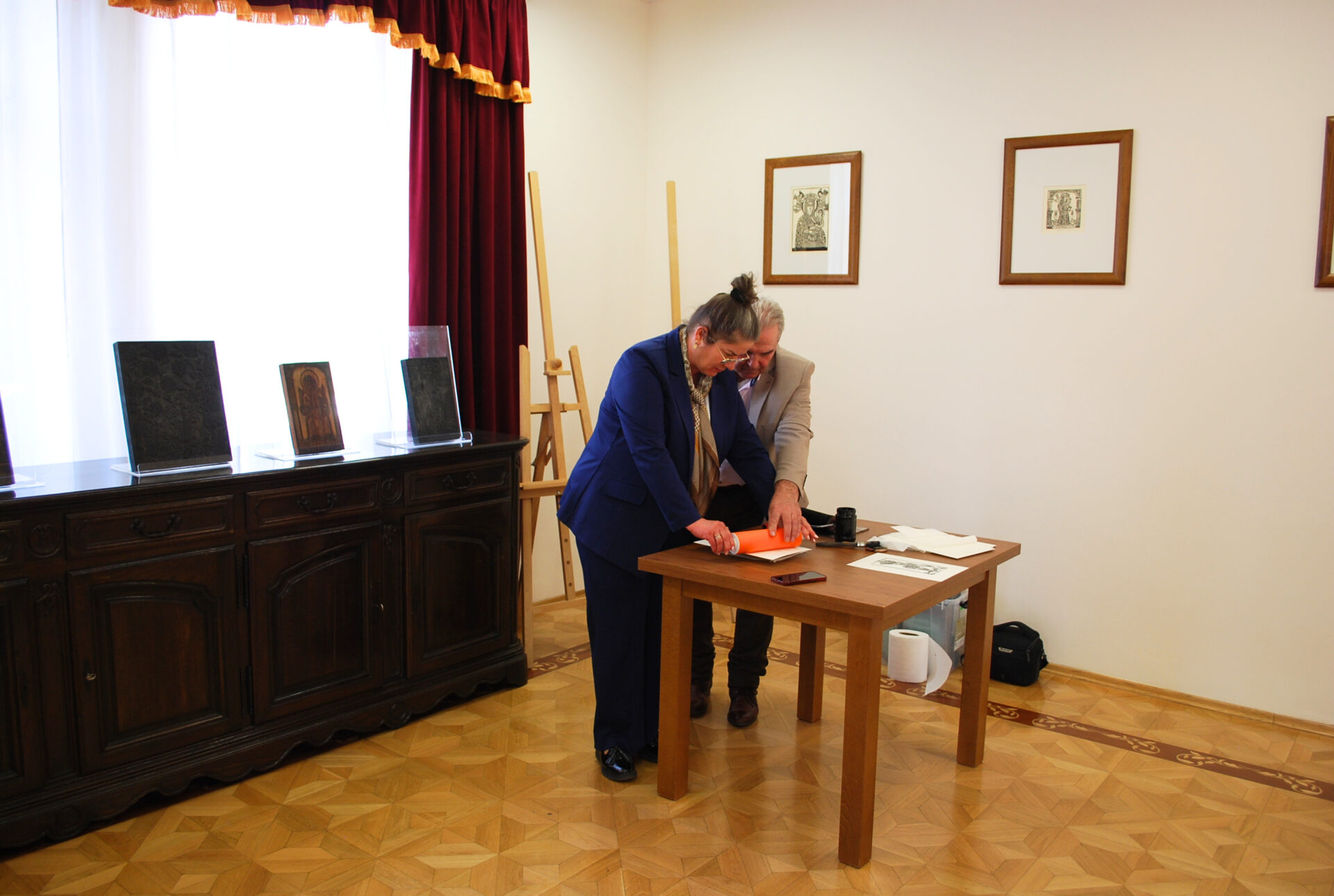 Po części oficjalnej uczestnicy mieli okazję swobodnie zwiedzać ekspozycję, a także zobaczyć z bliska wykonanie odbitek przez samego artystę, który chętnie opowiedział o procesie twórczym, narzędziach oraz historii poszczególnych prac, co nadało wydarzeniu kameralny, niemal warsztatowy charakter.
